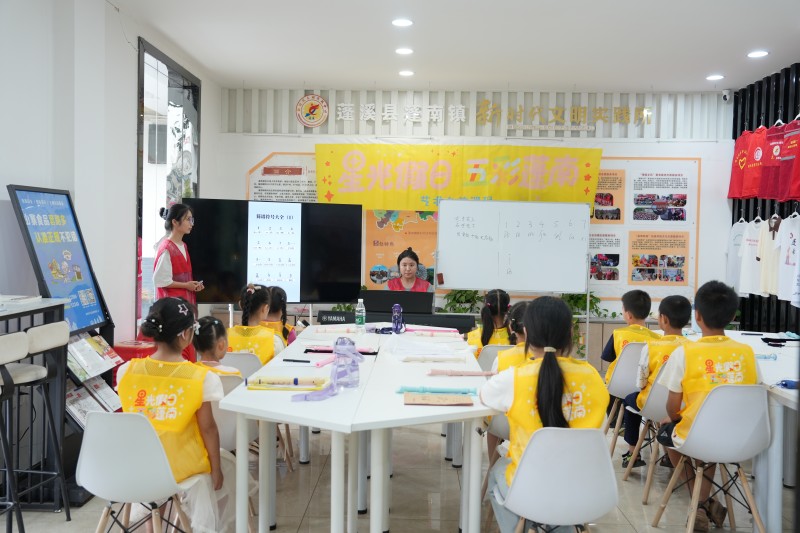 青少年在蓬溪县蓬南镇新时代文明实践所里过暑假。