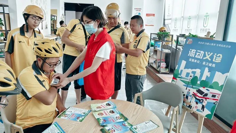 群众在流动义诊文明实践摊位前体检。乐至县委宣传部供图